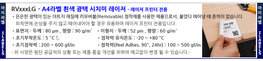 아이라벨 RVxxxLG 흰색광택 레이저프린터용 - 정사각형리벨 - QR코드라벨
